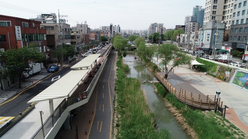 특히 신화교 하천 곡선구간에는 하천 주변 경관과 조화를 이루는 '투명 홍수 방어벽(H=1.5m, L=45m)'을 새롭게 설치했다. 홍수방어벽 설치로 구는 별빛내린천의 여유고를 높여 침수에 선제적으로 대비하고, 별빛내린천 이용객의 안전사고를 예방할 수 있다.
