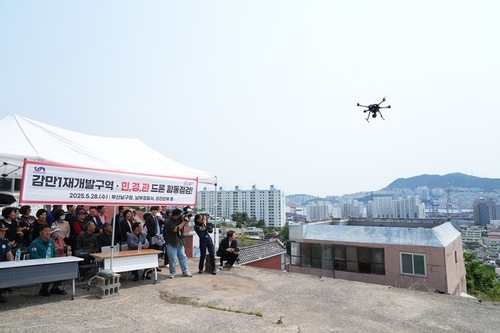 부산 남구(구청장 오은택)과 부산 남부경찰서(서장 안영봉)은 5월 28일 오후 부산 남구 감만1재개발구역 내 빈집 밀집 지역을 민간단체와 지역 주민 등 70여 명과 함께 전국 최초로 드론 영상 관제 차량을 활용해 민·관·경 합동점검 및 순찰 활동을 실시했다.