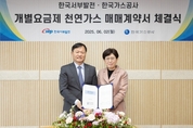 한국가스공사(사장 최연혜)는 6월 2일 서울 중구 LNG비지니스허브에서 한국서부발전(사장 이정복)과 발전용 개별요금제 천연가스 매매계약을 체결했다고 밝혔다. 이날 행사에는 최연혜 가스공사 사장과 이정복 서부발전 사장을 비롯한 양사 관계자 10여 명이 참석했다. 이 계약으로 서부발전은 2025년부터 2036년까지 구미·김포·공주 천연가스 발전소에 연간 75만 톤, 전체 약 8백만 톤 규모의 천연가스를 공급받게 된다. 가스공사는 국내 최고 수준의 가격 경쟁력과 공급 안정성을 바탕으로, 이번에 우리나라 최고의 발전 공기업을 개별요금제 고객으로 새롭게 유치하게 된 것이다. 개별요금제는 가스공사 설비 이용률과 이용 효율을 높여 가스 요금 인상을 완화하기 위해 지난 2020년 도입됐다. 가스공사는 지금까지 연간 약 3백만 톤의 누적 계약 물량을 달성했으며, 앞으로도 개별요금제 공급을 지속 확대해 나갈 계획이다. 특히, 이번 개별요금제 매매계약은 그간 양사가 이어온 다각적이고 긴밀한 협력 관계에서 비롯된 의미 있는 성과다. 가스공사와 서부발전은 천연가스 공급 및 에너지 인
